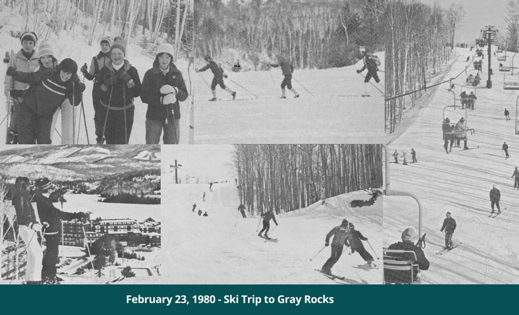 The winter of 1980 got off to a rocky start for a Team QCH outing at Gray Rocks in the Laurentian Mountains: A late bus and a lost navigator slowed down the QCH crew, but the group found its stride, excelling in both downhill and cross-country skiing.